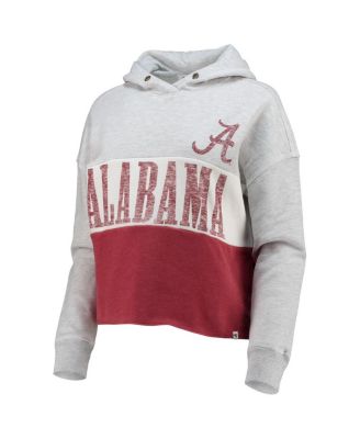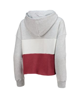 Women's Heathered Gray, Heathered Crimson Distressed Alabama Crimson Tide Lizzy Colorblocked Cropped Pullover Hoodie