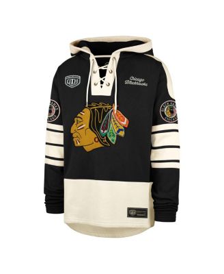 Men's Black Chicago Blackhawks Blue Line Heritage Lacer Pullover Hoodie