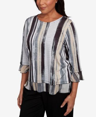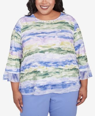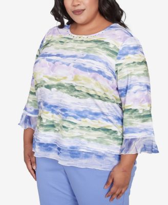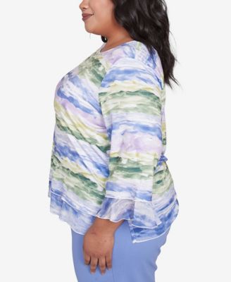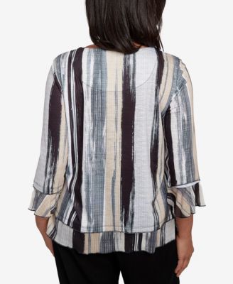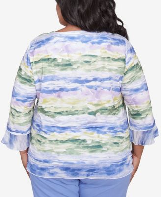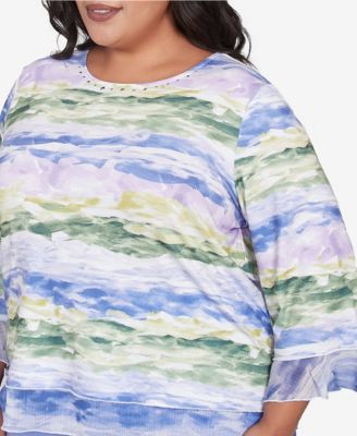 Plus Size Santa Fe Watercolor Biadere Striped Crew Neck Top