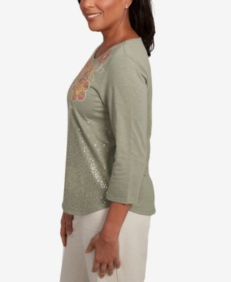 Petite Copper Canyon Scattered Sequin Floral Neck Top
