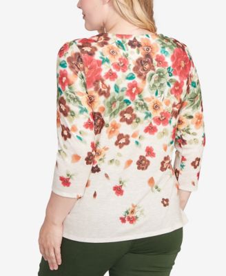 Plus Size Urban Legend Abstract Floral Button Front Top