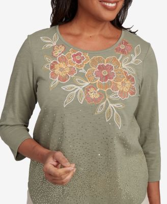 Petite El Paso Asymmetrical Floral Embroidered Top