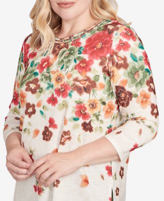 Plus Size Mount Laurel Falling Leaf Long Sleeve Sweater