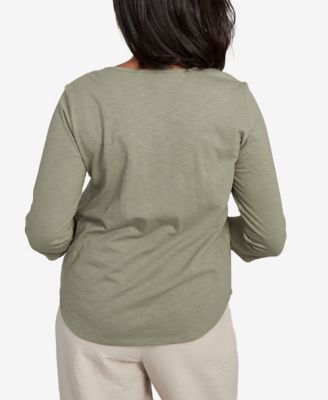 Women's Natural Instinct Monotone Patch Beaded Split Neck Top