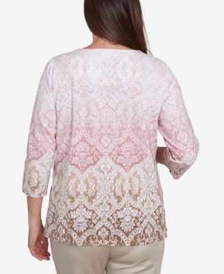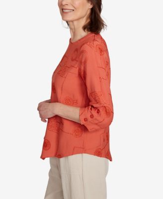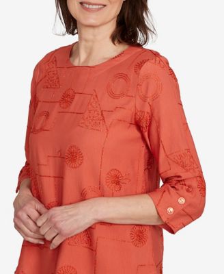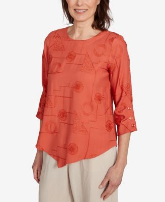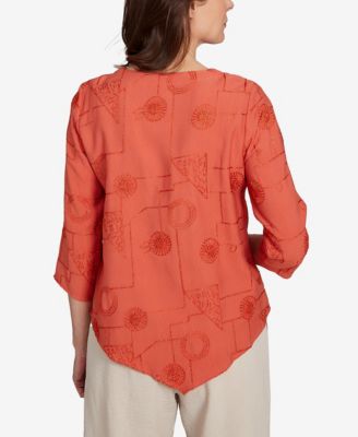 Petite Copper Canyon Metallic Embroidered Geometric Top