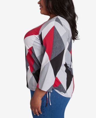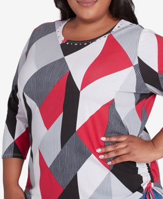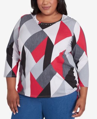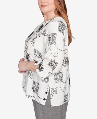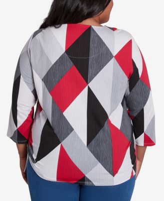 Plus Size Classic Geometric Crew Neck Top