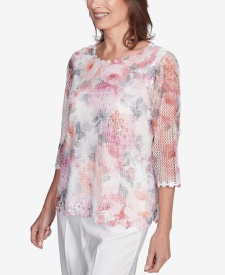 Women's Estate of Mind Floral Mesh Watercolor Top