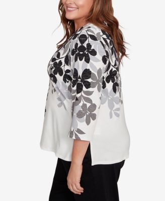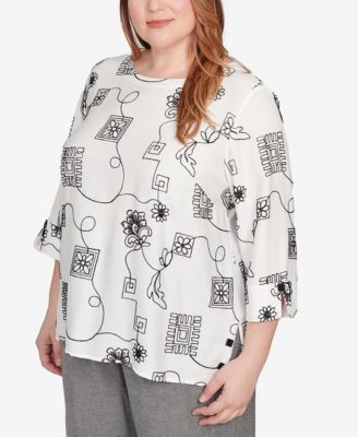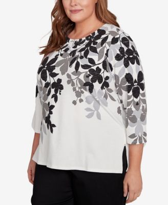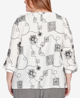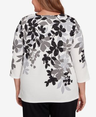 Plus Size Mount Laurel Floral Detailed Neck Top