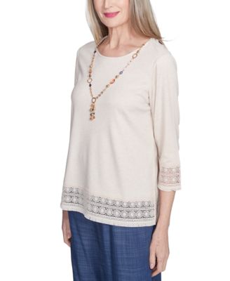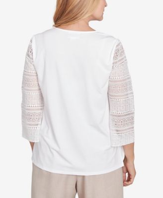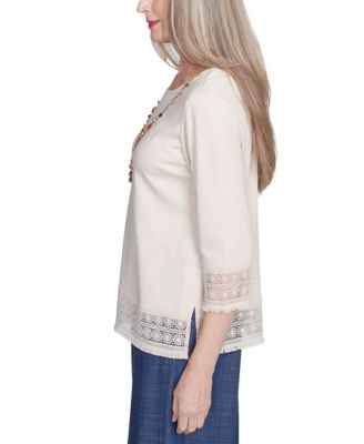 Petite Summer Solstice Lace-Trim Knit Top