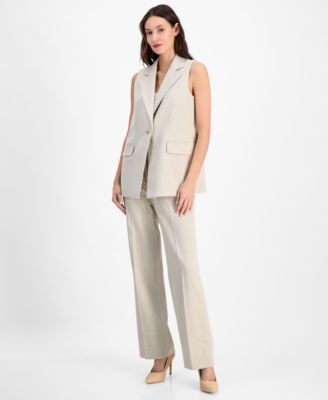 Women's Rhinestone-Trim Cardigan, Sleeveless Knit Top & Bootcut Suit Pants