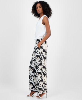 Petite Dot-Print Pull-On Ponte Pants