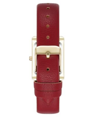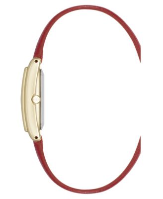 Women's Quartz Rectangular Red Faux Leather and Gold-Tone Alloy Metal Watch, 24mm