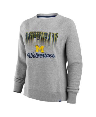 Women's Heather Gray Michigan Wolverines Training Camp Hit Hard Fleece Pullover Sweatshirt