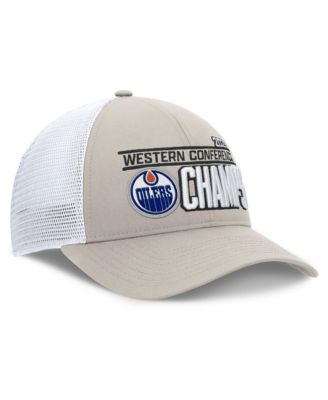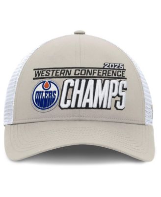 Men's Gray/White Edmonton Oilers 2025 NHL Western Conference Champions Locker Room Adjustable Hat