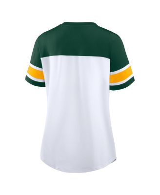 Women's White/Green Green Bay Packers Athena Rhinestone Lace-Up V-Neck T-Shirt