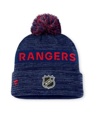 Men's Blue New York Rangers Authentic Pro Alternate Logo Cuffed with Pom Knit Hat