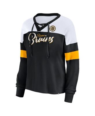 Women's Black Boston Bruins Take the Shot Long Sleeve Lace-Up V-Neck T-Shirt