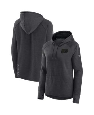 Women's Heather Charcoal Philadelphia Flyers Authentic Pro Road Performance Raglan Pullover Hoodie