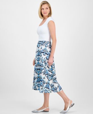 Women's Printed Jacquard Pull-On Midi Skirt, Exclusively at Macy's