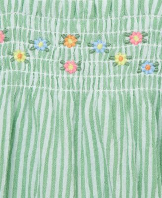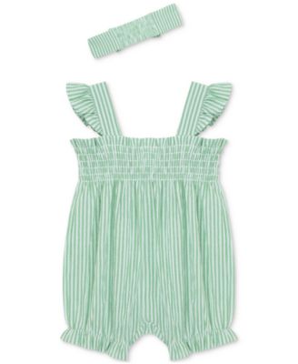 Baby Girls Cotton Striped Floral Bubble Romper & Headband, 2 Piece Set
