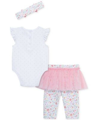 Baby Girls Swans Bodysuit, Skirted Leggings & Headband, 3 Piece Set
