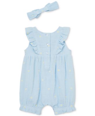 Baby Girls Cotton Gauze Daisy Romper & Headband