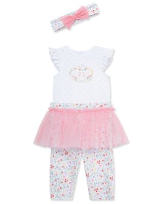 Baby Girls Cotton Bellflower Headband, Tiered Tunic & Leggings, 3 Piece Set