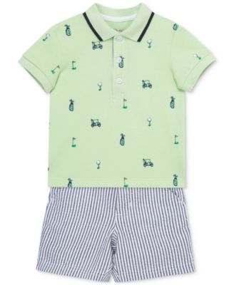 Baby Boys Cotton Golf Polo & Striped Shorts Set