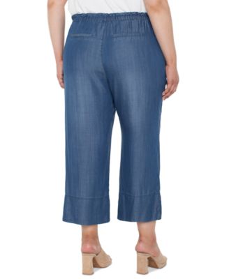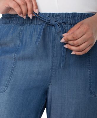 Trendy Plus Size Chambray Pull-On Cropped Pants