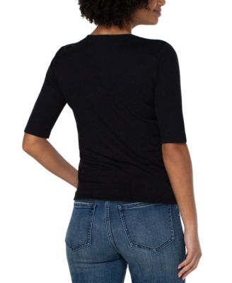 Women's Mock-Neck Long-Sleeve Shirred Knit Top