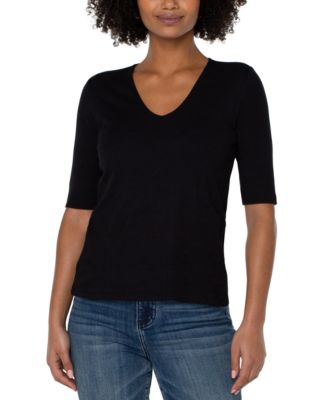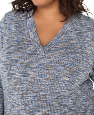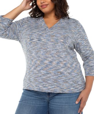 Trendy Plus Size Space-Dyed 3/4-Sleeve Knit T-Shirt