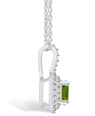 Peridot (1-1/2 Ct. T.W.) and Diamond (3/8 Ct. T.W.) Halo Pendant Necklace in 14K White Gold