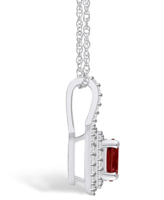 Garnet (1-5/8 Ct. T.W.) and Diamond (3/8 Ct. T.W.) Halo Pendant Necklace in 14K White Gold