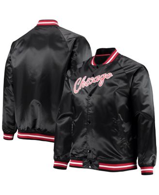 Men's Black Chicago Bulls Big and Tall Hardwood Classics Raglan Satin Full-Snap Jacket