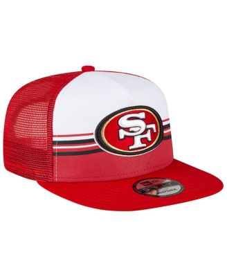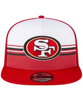 Men's White, Scarlet San Francisco 49ers Striped A-Frame 9FIFTY Trucker Snapback Hat