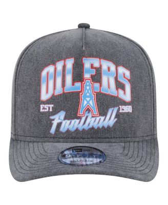 Men's Black Houston Oilers Throwback Washed A-Frame 9FIFTY Snapback Hat