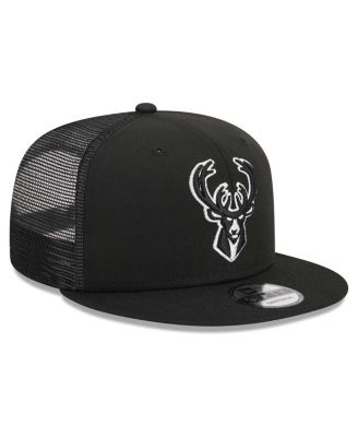 Men's Black Milwaukee Bucks Evergreen 9FIFTY Trucker Snapback Hat