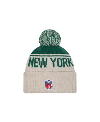 Men's Stone/Green New York Jets NFL Sideline Historic Cuffed Knit Hat with Pom