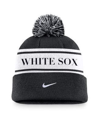 Men's Black Chicago White Sox Team Stripe Peak Cuffed Knit Hat with Pom