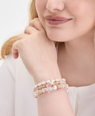 Gold-Tone Imitation Pearl Stone Drop Earrings, Exclusively at Macy's