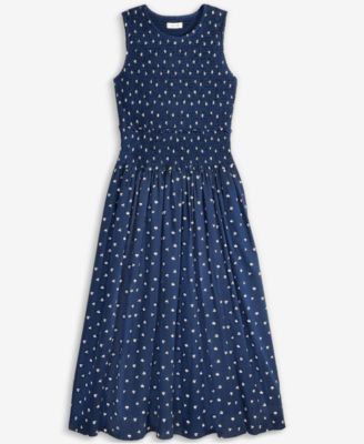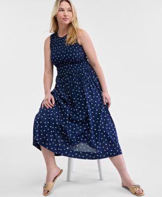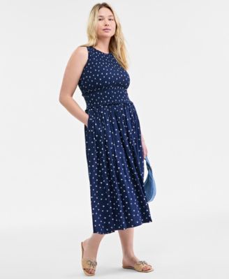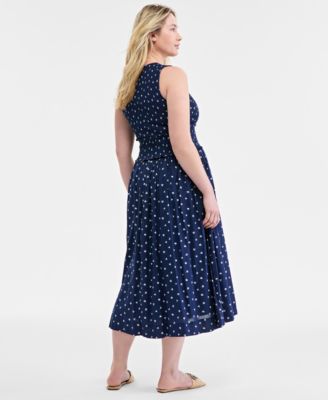 Women's Woven Printed Smocked Sleeveless Midi Dress, Exclusively at Macy's