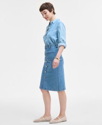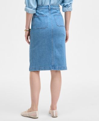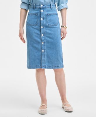 Women's Patch-Pocket Denim Midi Skirt, Exclusively at Macy's