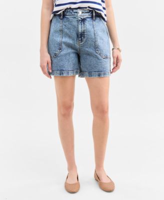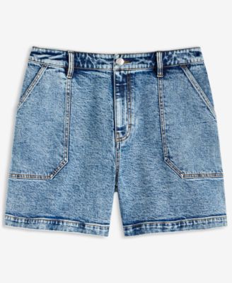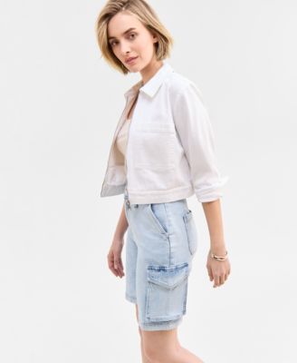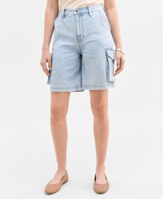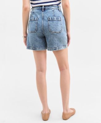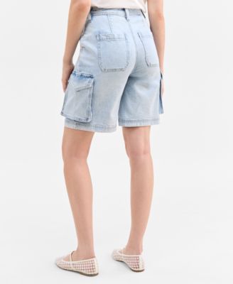 Women's High Rise Utility Midi Denim Shorts, Exclusively at Macy's