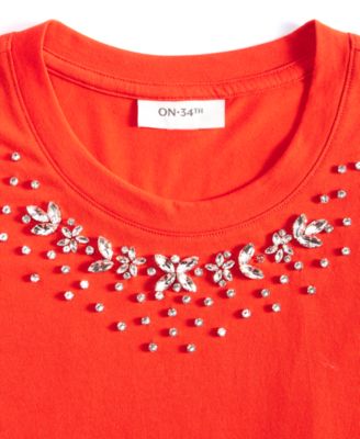 Women's Superbe Embellished Crewneck Tee, Exclusively at Macy's