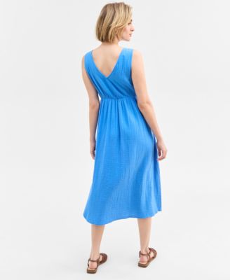 Women's Cotton Poplin Shirred Midi Dress, Exclusively at Macy's