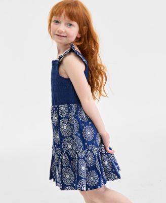 Little & Big Girls Mommy & Me Eyelet Ruffle-Sleeve Smocked Dress, Exclusively at Macy's