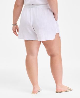 Plus Size Cotton Kumquat Smocked-Back Mini Dress, Exclusively at Macy's