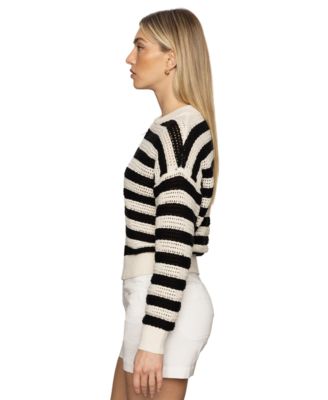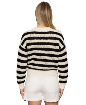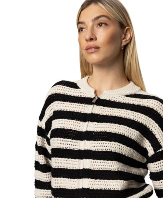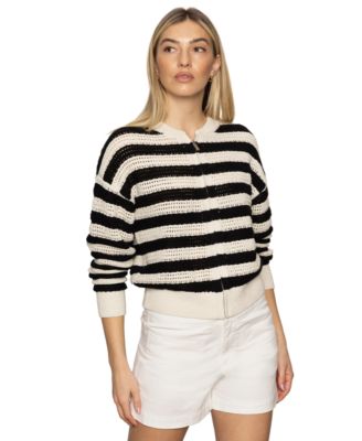 Women's Cotton Stripe Open-Knit Bomber Jacket