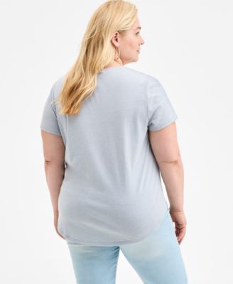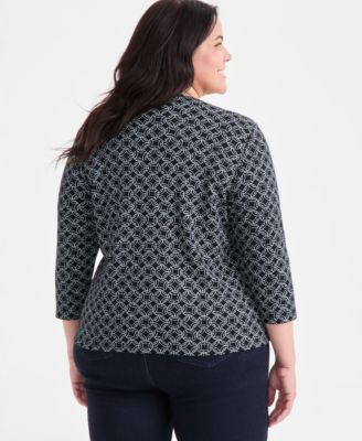 Plus Size Printed 3/4-Sleeve Henley Top, Exclusively at Macy's
