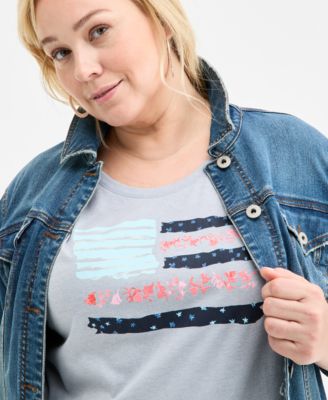 Plus Size Printed Flutter-Sleeve Top, Exclusively at Macy's